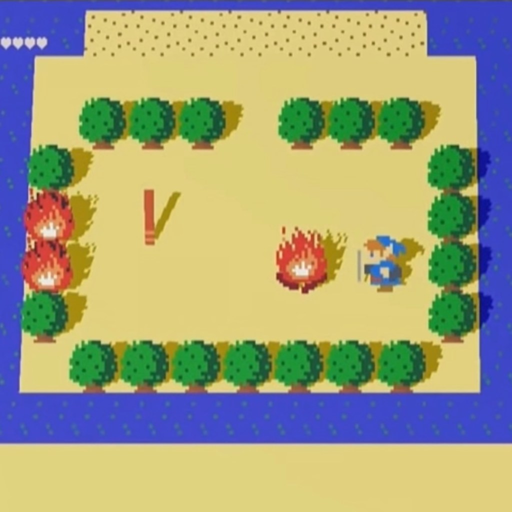 Valerie Precigout, author of Zelda: The History Of The Legendary Saga, explained that, in the prototype, “The 8-bit Link [could shoot] an arrow through a campfire to ignite the forest on the other side, then, [push] logs into the water using a tree leaf. None of this was possible in the first Zelda game, but it would be in Breath Of The Wild.”