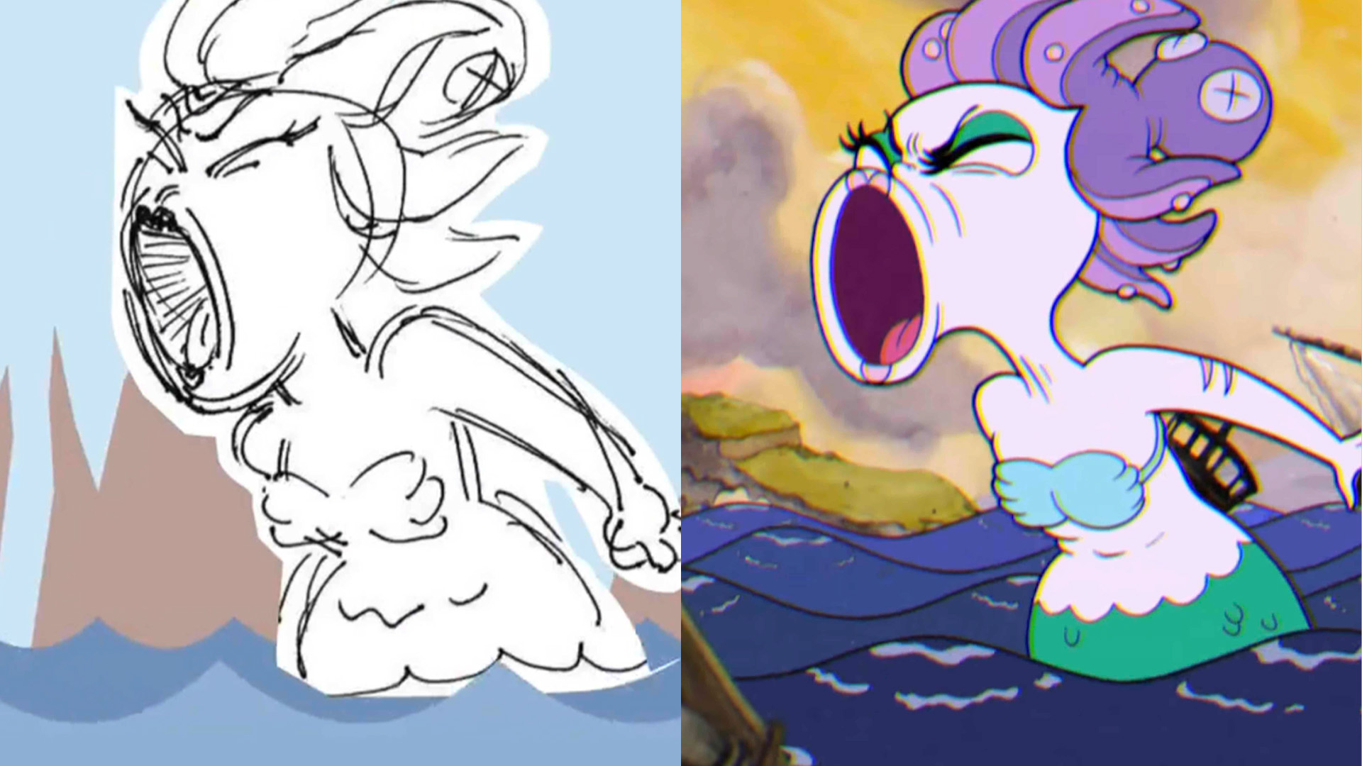 Cuphead artist Jake Clark prototyped the “Cala Maria” boss fight like a storyboard animatic (the kind you’d find in an animation pipeline), “using scanned-in scraps of paper and Adobe Flash (when it still existed) to work out the complex animation cycles, before [they ever thought] about cleanly animating anything.”