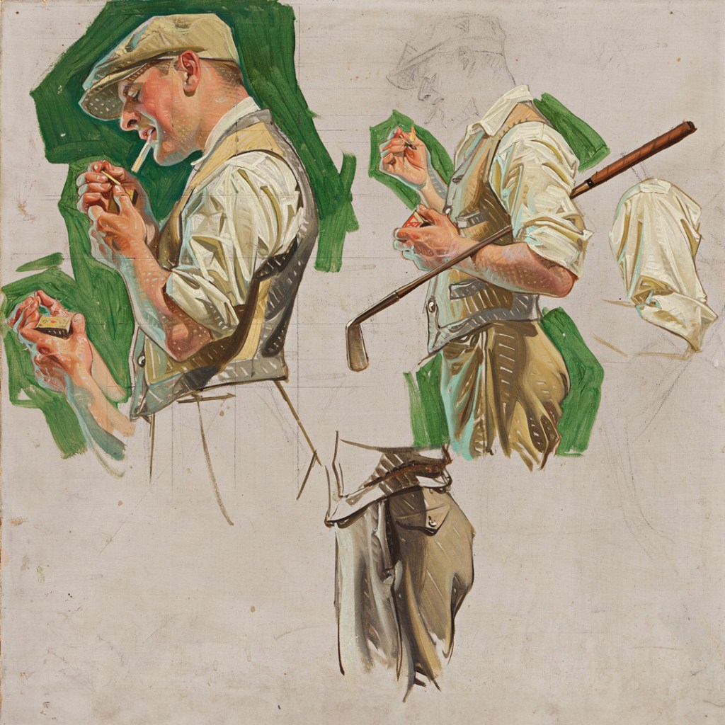 No matter how well Leyendecker’s preliminary figure sketches came out, he always painted a more refined final version after the model was dismissed.”