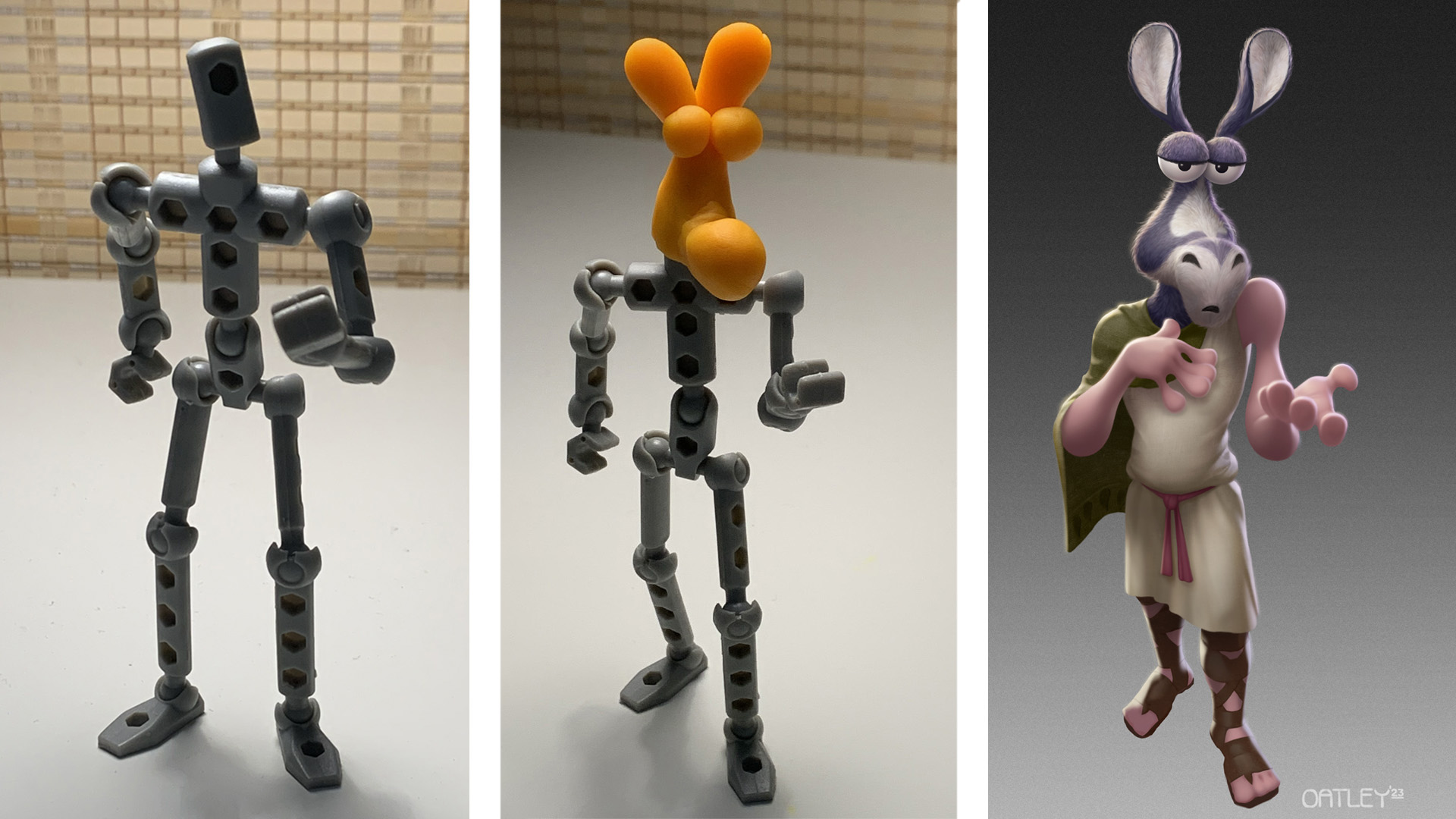 We also build messy maquettes to sketch our sets, props, and characters in 3D.