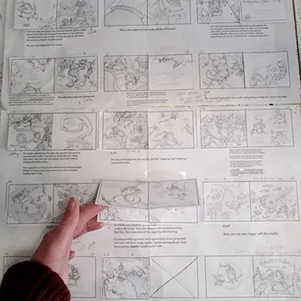 It helps me identify if there is a good flow in the illustrations, a good mix of spot, full page, and full spreads, and a good mix of ‘camera angles’ to tell the story.
